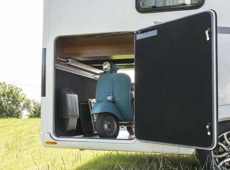 Um Ihnen das Beladen zu erleichtern, ist der große Laderaum im hinteren Teil abgesenkt. Dieser Stauraum ist bei allen unseren Reisemobilen der LV-Modellreihe in 3 Höhen erhältlich.
