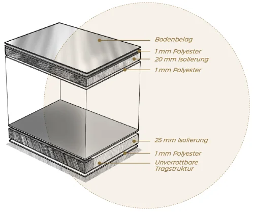 Der Boden: Ein innovativer Doppelboden, der höchste Isolationsleistung mit exklusiver Funktionalität vereint.